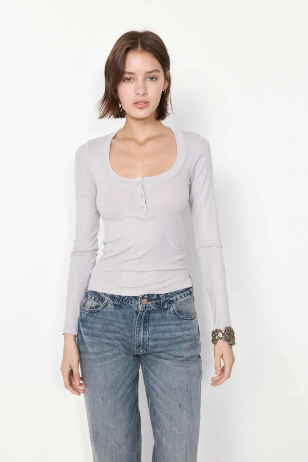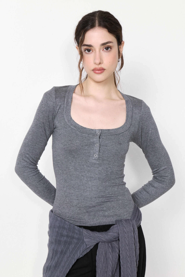 Descubrí la REMERA CANAL, una prenda de manga larga con escote redondo diseñada para un calce al cuerpo impecable. Confeccionada en ribb de viscosa elastizado, ofrece comodidad y flexibilidad durante todo el día. Además, cuenta con detalles de broches metálicos en el escote que aportan un toque sofisticado y moderno. Ideal para combinar en tus looks casuales o formales. Código: R26IRE150.
